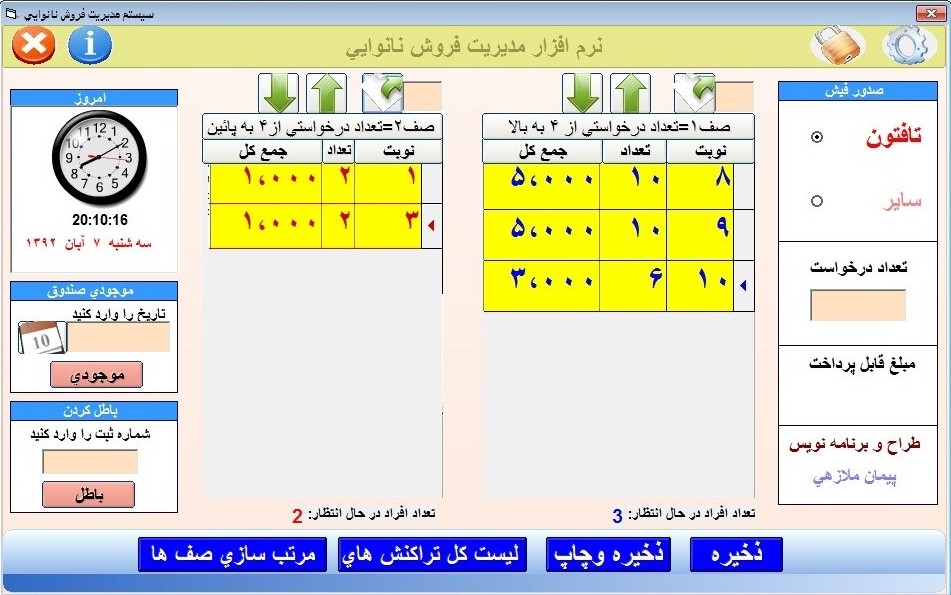 طراحی نرم افزارهای ادارات، شرکت ها، رستوران ها و طراحی سیستم های نوبت دهی
